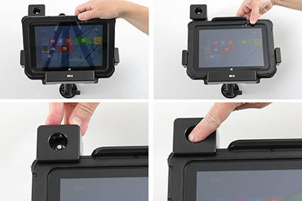 • 739267 - modułowy uchwyt o wzmocnionej konstrukcji do Zebra ET50 8.4 z blokadą kluczykową. Jest specjalnie dopasowany do urządzeń, które są wyposażone w ochronną ramkę oraz dodatkowy pasek na rękę.