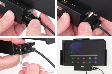 - 721225 - uchwyt z kablem USB/ładowarką samochodową oraz głowicą obrotową do Samsung Galaxy Tab Active 2, SM-T390/SM-T395 w oryginalnym futerale. W zestawie adapter do USB umożliwiający podłączenie urządzeń peryferyjnych z możliwością transferu danych.