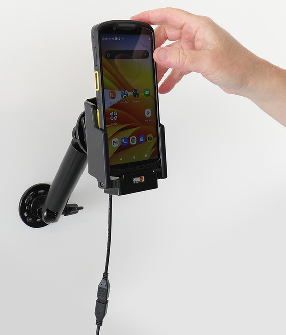 - 712307 - uchwyt z ładowarką samochodową oraz głowicą obrotową do Zebra TC58. PASUJE tylko do urządzenia bez oryginalnego futerału ochronnego Zebra.