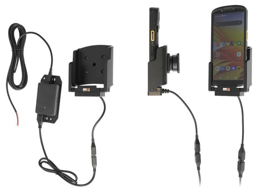 Aktywny uchwyt do instalacji na stałeładuje Twój terminal, gdy ten znajduje się w uchwycie.Jest on przystosowany do podłączenia pod deską rozdzielczą. Efektem jest dyskretna instalacja bez wiszących, poplątanych kabli wewnątrz auta.
