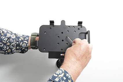 Uchwyt został wykonany z bardzo mocnego i wytrzymałego tworzywa ABS. Zamontuj go do dowolnej płaskiej powierzchni, w samochodzie ciężarowym, w magazynie, na wózku widłowym itp. Uchwyt posiada w swojej tylnej części standardowe otwory AMPS i VESA. Uchwyt nie ogranicza dostępu do kamery, wszystkich przycisków funkcyjnych i portów elektronicznych.
