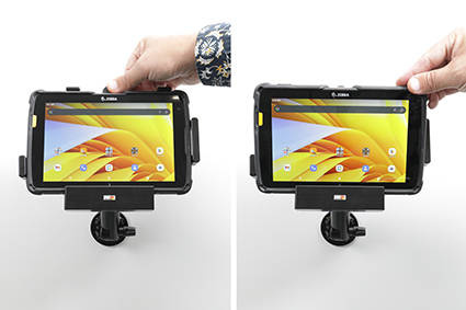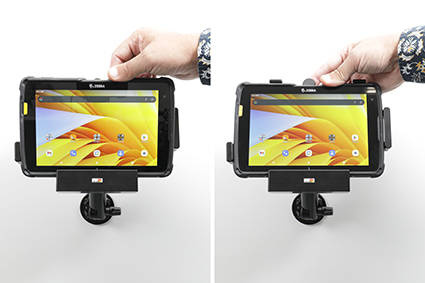 • 710318 - uchwyt pasywny o wzmocnionej konstrukcji do Zebra ET40 8.0. Jest specjalnie dopasowany do urządzeń, które są wyposażone w ochronną ramkę.