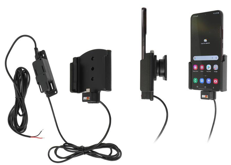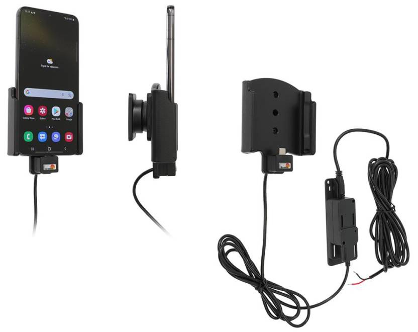 - 727294 - uchwyt aktywny do instalacji na stałe z głowicą obrotową, adapterem Molex oraz 2A/3A ładowarką do Samsung Galaxy S22+.